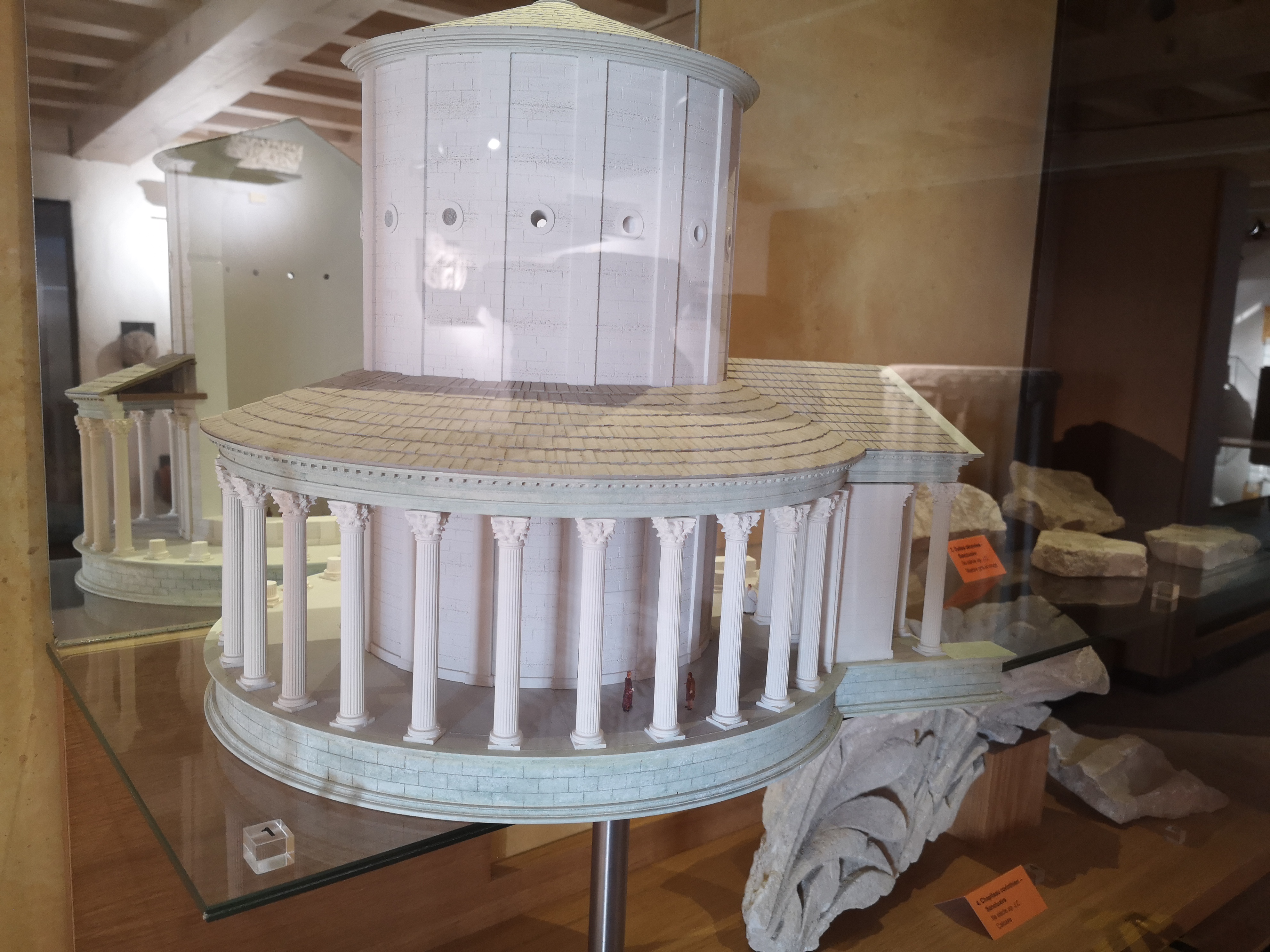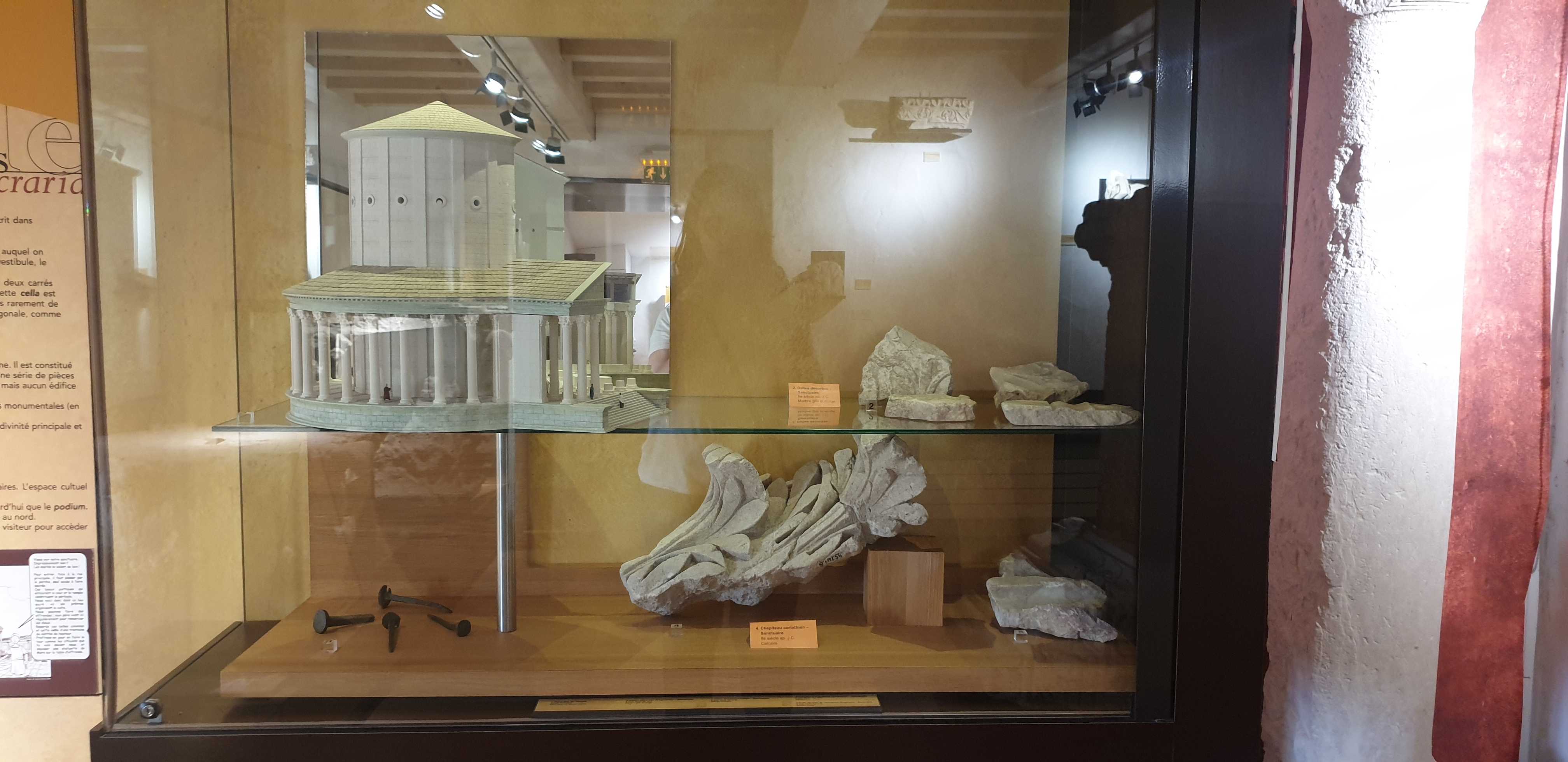 Une découverte passionnante. Amateurs d archéologie nous avons été très surpris par la disposition ronde de cette cella, car nous avons l habitude de visiter des temples gallo romains à la cella carrée. *Visite du site d abord qui permet de se rendre compte de l immensité de cette ville romaine et de tout ce qui a été fouillé et recouvert par protection. Une guide très intéressante et enthousiaste qui répond aux questions de son auditoire et les sollicite. Elle appuie ses explications avec une grande maquette et des documents A3 ( visibles par tout le groupe). *Atelier engins de construction avec maquettes et engins réels. Passionnant car les différentes hypothèses d invention et d utilisation sont clairement présentés par une animatrice passionnée. * Visite avant la fermeture, du musée qui est très riche en objets de toute sorte. Vitrines très bien éclairées et donnant envie de se reporter aux explications. Des loupes pour grossir les petits objets. Personnellement j aurais aimé que la photo de l intaille très grossie soit à côté et non dans la petite salle à côté dans le diaporama. Je reviendrai pour moi, pour approfondir et avec mes petits enfants de 10 et 6 ans. J expérimenterai avec eux le livret. A voir absolument. Un bel après-midi d histoire sur le terrain.