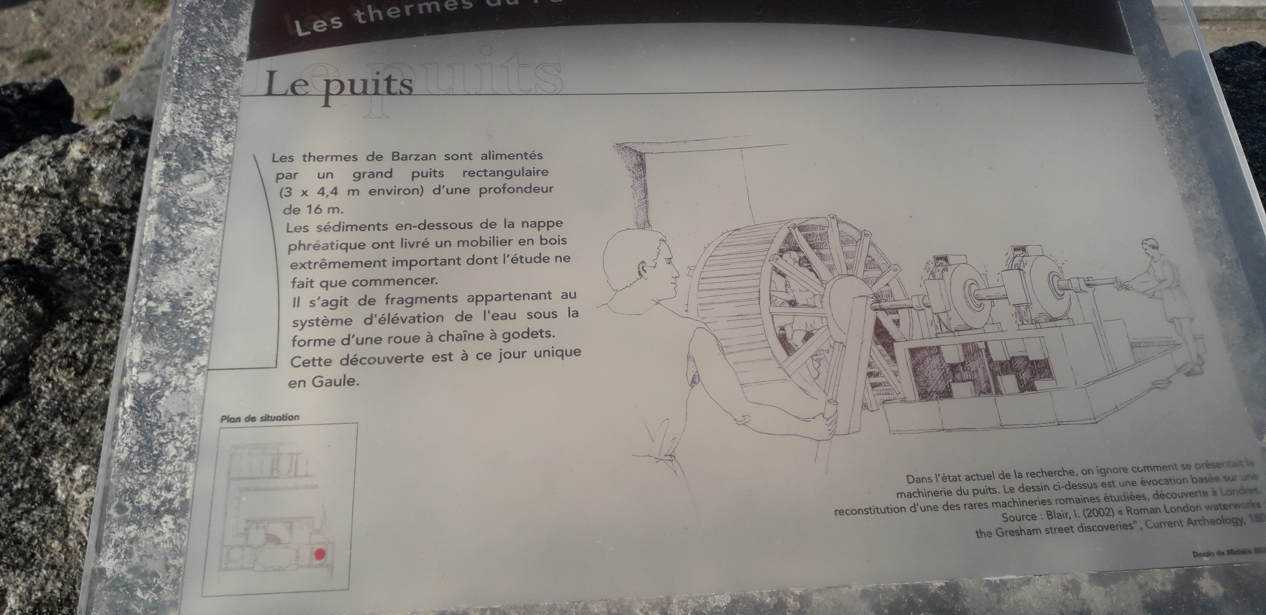 Un guide pationnant pour nous expliquer le site, sa position vis à vis de l estuaire de la Gironde avec le port permettant d approvisionner, du milieu du premier siècle à l fin du 2e, la capitale de région Saintes, avant de tomber dans l oubli au 3e siècle
