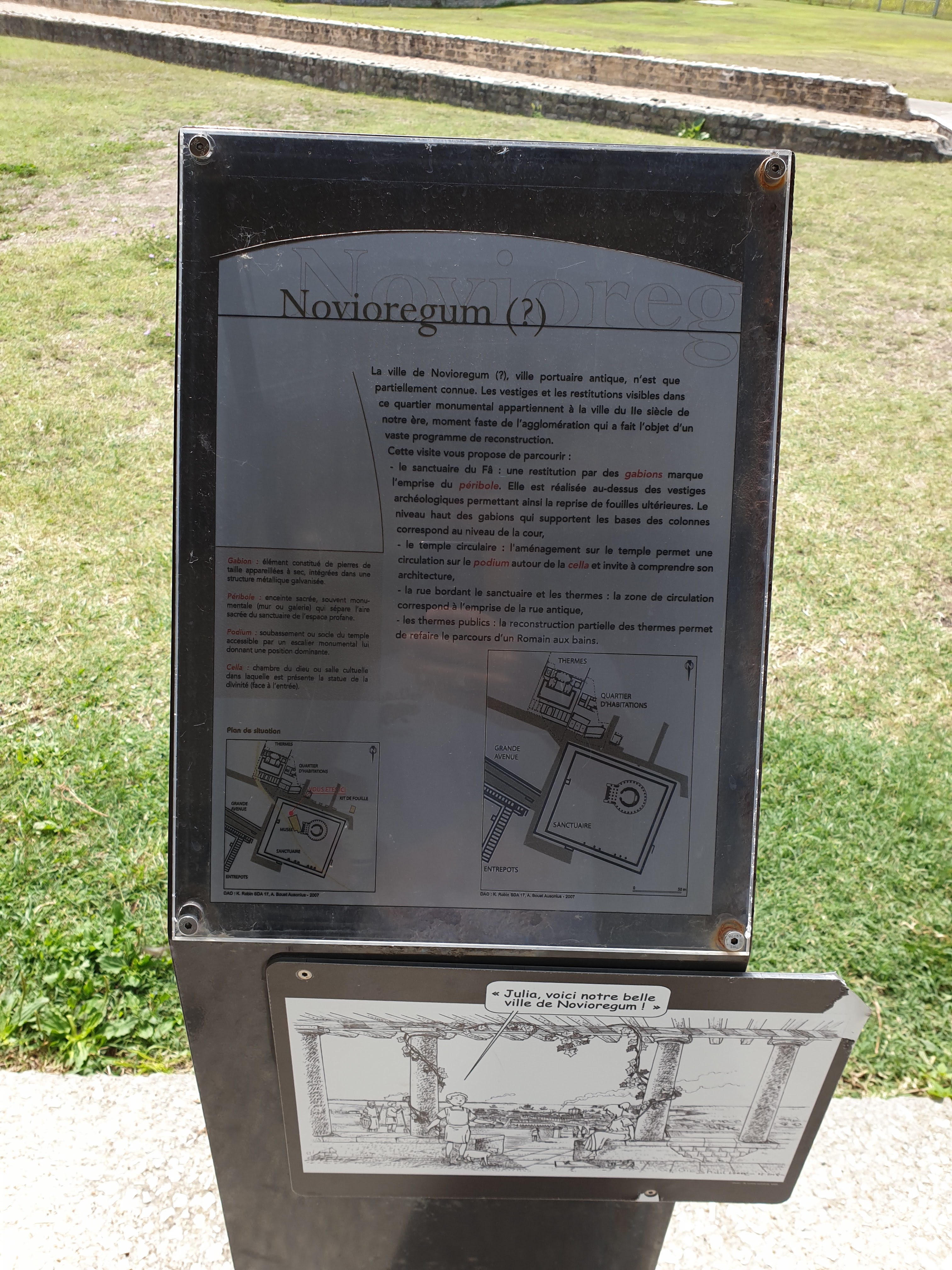 Un site gallo romain-le village de Novio regium y aurait compris jusqu'à 6000 habitants jusqu'à la fin du 2e siècle- dont les fouilles ont à peine commencé. On a deviné les lignes des rues seulement en 1975. Les thermes et un sanctuaire sont pour le moment à découvert. Un théâtre antique est en train d'émerger. C'est passionnant et très émouvant. Les guides sont très compétents et peuvent vous restituer la vie de l'époque avec exactitude. Un site qui effectivement ne paye pas de mine mais qui envoûte. J'y retournerai dès que possible.